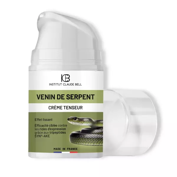 Banbrytande anti-aging ansiktskräm med ormgift (50ml): AQUA, DICAPRYLYL CARBONATE, GLYCERIN, GLYCERIN STEARATE, CETEARYL ALCOHOL, ARGANIA, SPINOSA KERNEL OIL, HELIANTHUS ANNUUS SEED OIL, SODIUM STEAROYL GLUTAMATE, SODIUM POLYACRYLATE, TOCOPHERYL ACETATE, XANTHAN GUM, CETEARYL GLUCOSIDE, DIOSCOREA COMPOSITA ROOT EXTRACT, CARBOMER, BUTYLENE GLYCOL, SODIUM LACTATE, DIPEPTIDE DIAMINOBUTYROYL BENZYLAMIDE DIACETATE, SODIUM CHLORIDE, POLYSORBATE 20, PALMITOYL PENTAPEPTIDE-4, CITRIC ACID, TETRASODIUM EDTA, PHENOXYETHANOL, CHLORPHENESIN, PARFUM.