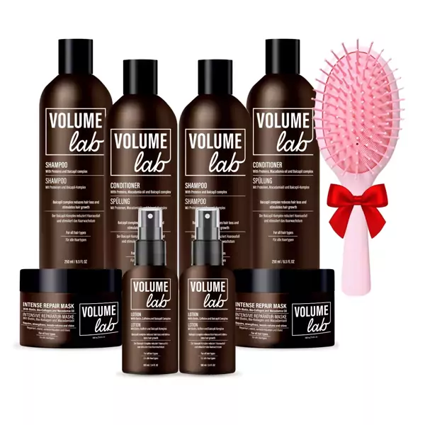 Ett särskilt effektivt komplex av ingredienser: Vitamin B5, B6, biotin, aminosyror och eteriska oljor. Volume Lab produkter främjar ny hårtillväxt, gör håret tjockare och förhindrar kluvna hårtoppar!