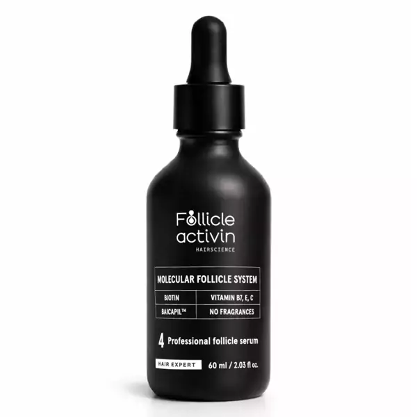 Vårt FOLLICLE ACTIVIN-serum har utvecklats av ett expertteam med målet att minska håravfall, medfött hårtunnande och att aktivera hårsäckarnas aktivitet för snabbare hårväxt. Serumet är framtaget med en speciell teknologi som hjälper till att återställa hårsäckarnas funktion. Det verkar direkt genom att förse hårbotten och håret med livsviktiga näringsämnen.